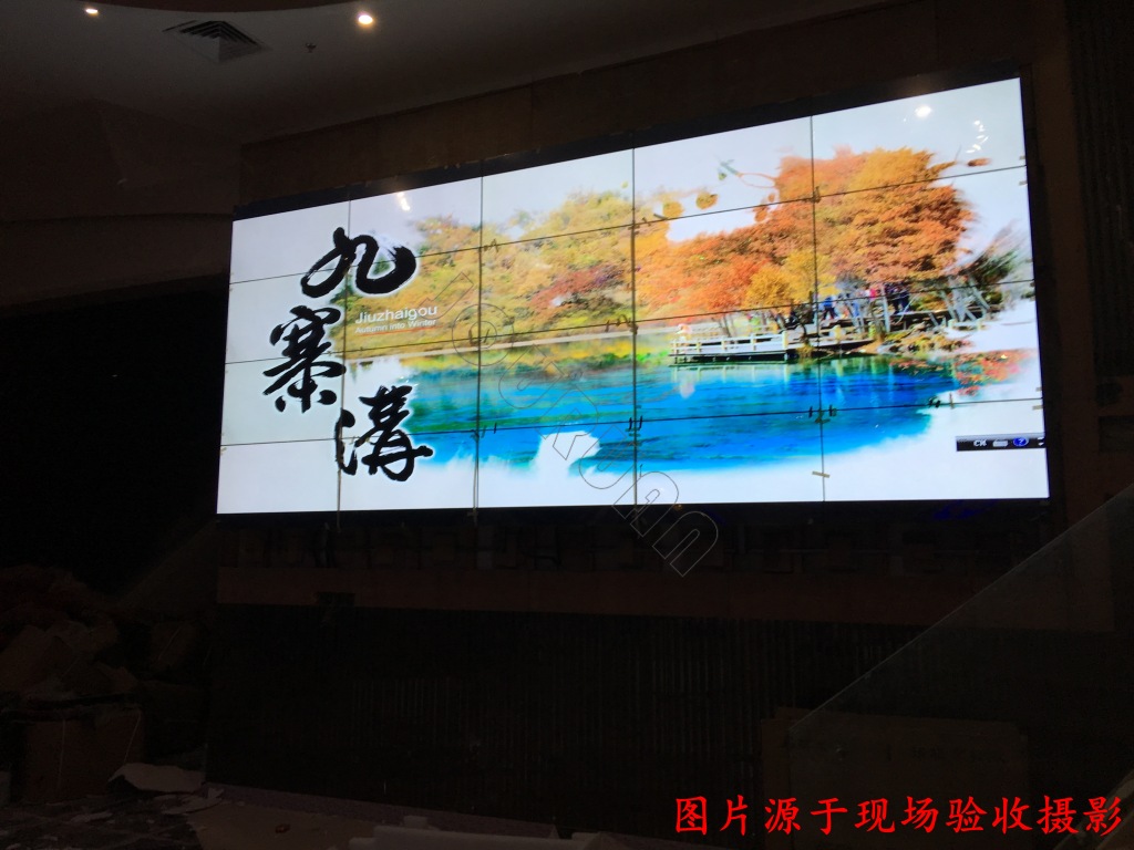 中影嘉年华 ,连锁电影城,影城的影视预告片,放影排期,美食推荐等,一切顾客关心与获悉的信息都可以通过各种显示屏上获得,以下是55寸液晶拼接,1.7MM拼缝,5*4的排序拼接,组成了一个总尺寸约为6160*2830的巨大显示拼接墙!